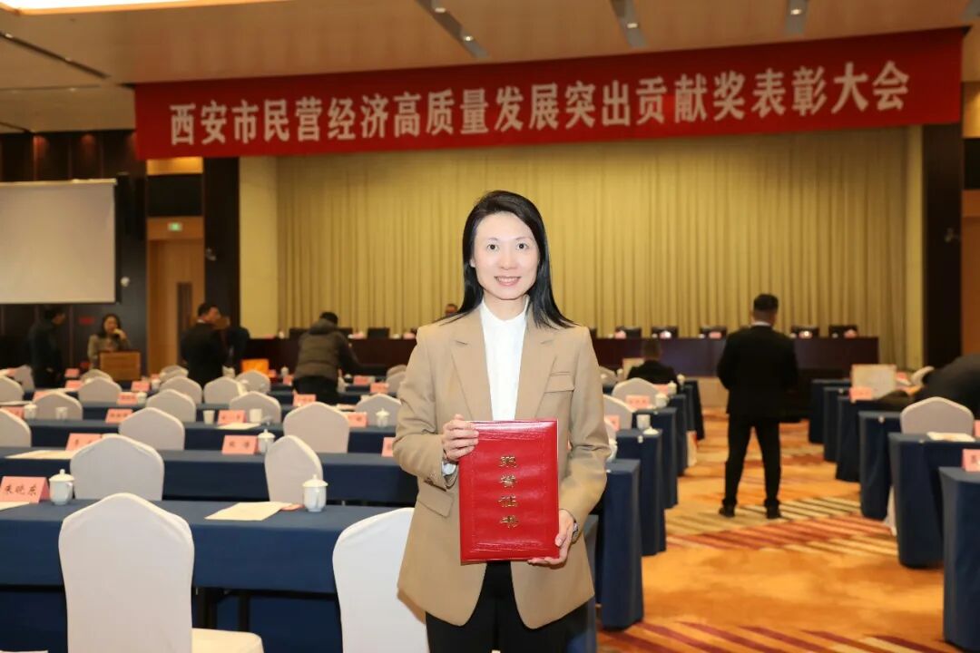 大会以“聚力西安高质量发展,彰显民企新时代风采”为主题,对94位优秀民营企业家及47家杰出民营企业进行了集中表彰,颁发了荣誉证书与奖牌。其中,陕西松林董事长黄琤女士凭借其卓越的领导力与企业发展的突出贡献,荣获由中共西安市委、西安市人民政府共同颁发的 “西安市民营经济高质量发展突出贡献企业家奖”。