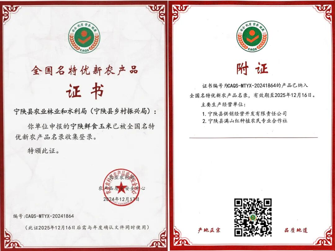 在秦岭深处的宁陕县,有一颗璀璨的农业明珠正散发着诱人的光泽——宁陕鲜食玉米。作为宁陕主导产业之一,这里的鲜食玉米凭借其独特的品质,于 2024 年 12 月经农业农村部农产品质量安全中心审核公示后,正式取得全国名特优新农产品认证证书 ,这一殊荣不仅是对宁陕鲜食玉米独特品质的高度认可,更是对宁陕县多年来在农业特色化发展道路上不懈努力的最好见证,成为当地一张亮丽的农业名片。